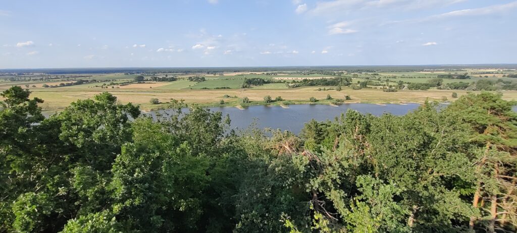 Da ich noch diversen Administrativ-Kram wegen dem Schaden am Fahrrad und den Annulationen der Fähren erledigen muss, rolle ich erst nach 11 Uhr los. Durch die endlos anmutendende Grossstadt Hamburg gehts nun gegen Süden zum Elberadweg. Die Elbe selber erblicke ich jedoch erst nach 36 Kilometern. Ich bin verwirrt, da scheinbar der Fluss in die falsche Richtung fliesst… bin ich falsch gefahren? Grund der optischen Täuschung ist der relativ starke Nordwest-Wind, welcher dem fast ohne Gefälle fliessenden Fluss oberflächlich eine scheinbar andere Flussrichtung gibt. Beim Stauwehr Geesthacht wirds dann klar, in welche Richtung das Wasser effektiv fliesst… ich bin nicht falsch gefahren. Nun gehts auf der Südseite des Flusses meist auf dem Deich absolut verkehrsfrei weiter. Bald passiere ich auf der gegenüberliegenden Seite das seit 2011 stillgelegte Kernkraftwerk Tespe (Krümmel). Ab Lauenburg bildete die Elbe auf knapp 100 Kilometer die innerdeutsche Grenze zwischen der BRD und der DDR, diesem Abschnitt folge ich nun. Vorübergehend geht es etwas zurückversetzt auf kleinsten Nebenstrassen weiter, ehe ich die malerische Ortschaft Bleckede erreiche (wo ich meinen Getränkeflaschen auffüllen kann). Zum Schluss wird das Gelände noch coupiert, teils mit bis zu 13% Steigung bzw. Gefälle. Auf dem Kniepenberg besteige ich den Aussichtsturm, welche einen wunderschönen Blick auf die Elbe-Landschaft bietet. Wenig später erreiche ich nach 115 Tageskilometer gegen 19 Uhr das Tagesziel Hitzacker.