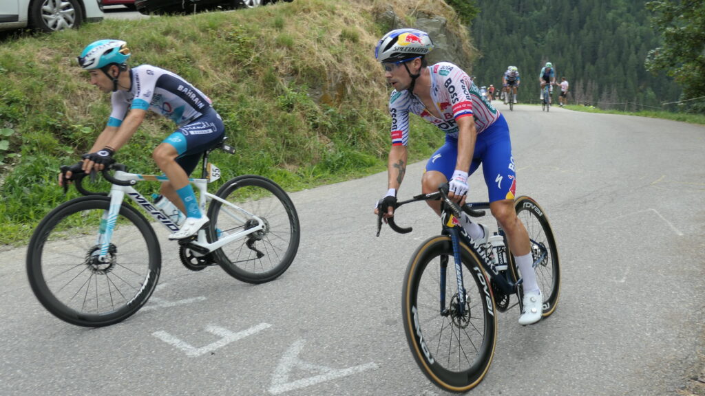 Mitte Nachmittag folgt dann die Passage der 19. Etappe, da der erste Pass aufgrund von angekündigten Demos und sonstigen Geschichten kurzfristig weggelassen wurde, ist der Col du Pré das erste Hindernis für die Radprofis. Trotzdem ist das Feld schon stark in Grüppchen gegliedert. Nach der Passage schauen wir im warmen Bus am TV den Schlussteil der Etappe nach La Plagne (wir sind ca. 70 km vor dem Ziel stationiert). Nachher transferieren wir gegen Abend nordwärts und entscheiden am Lac d’Annecy uns auf einem Camping einzuquartieren. Allerdings sind die Campings ziemlich ausgebucht, erst beim 3. Camping klappts.