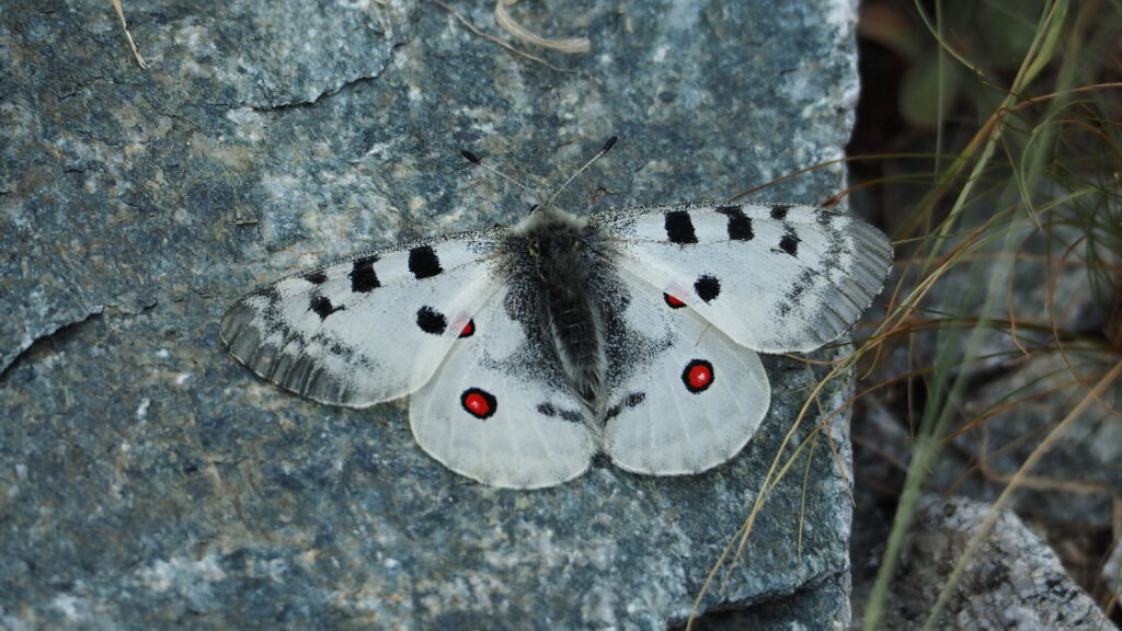 Nach dem Frühstück machen wir uns bereit für eine erste Wanderung. Im kleine Örtchen La Bérarde gibt es ein Infobüro des hier beginnenden Nationalparks Écrins, wo wir kurz vorbeischauen. Dann gehts nördlich in ein Seitental. Auf der Wanderung entdecke ich zum ersten Mal einen wunderschönen Apollo-Schmetterling. Nach einem Panache-Drinkstop im Réfuge Châtelleret (2232m) geht es auf der anderen Talseite über eine Zusatzsteigung zurück. Obwohl wir wenige grössere Tiere beobachen ist die Bergwelt ist schon eindrücklich hier, so entdecken wir entlang des Wegrandes beispielsweise Edelweiss und ein Murmeli.